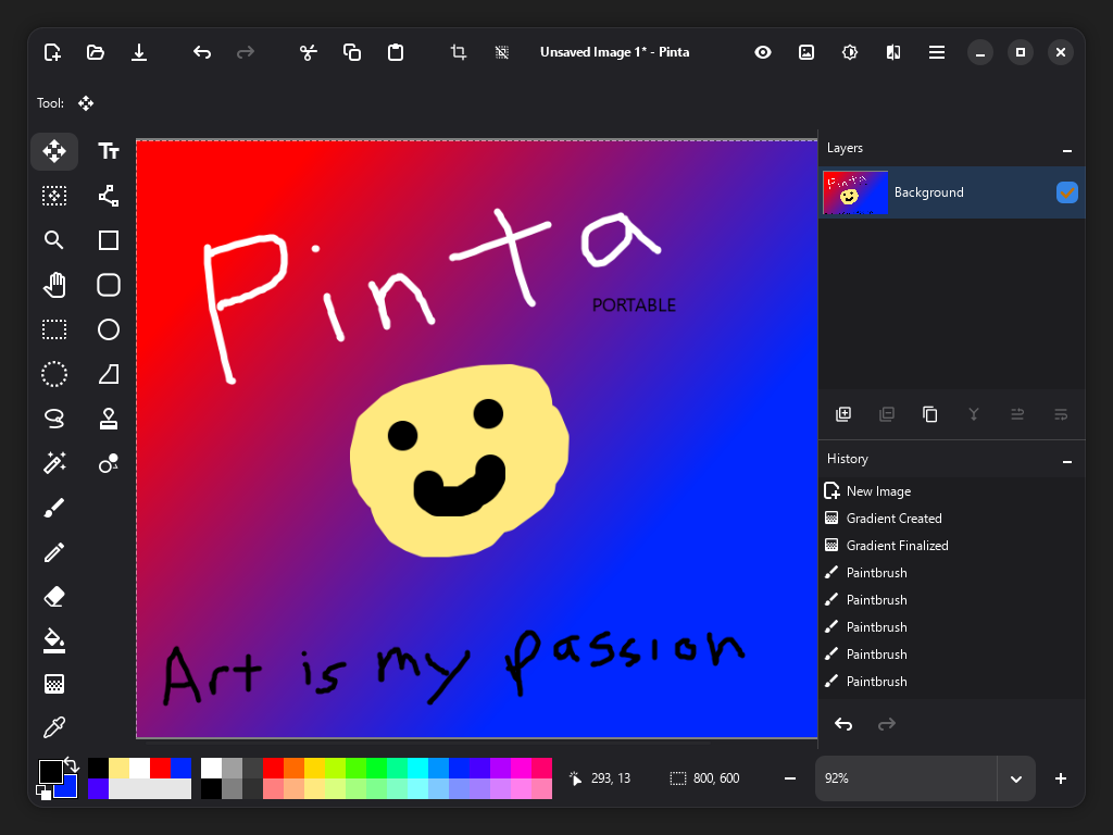 Pinta Portable has been released by PortableApps.com. Pinta is a drawing and image editing tool with intuitive tools and powerful features. It's in PortableApps.com Format so it can easily integrate with the PortableApps.com Platform. And it's open source and completely free.